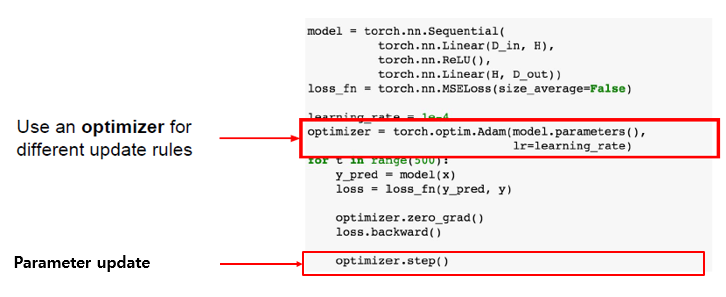 뿐만 아니라 Tensor Flow와 같이 PyTorch도 optimizer operation을 제공합니다.