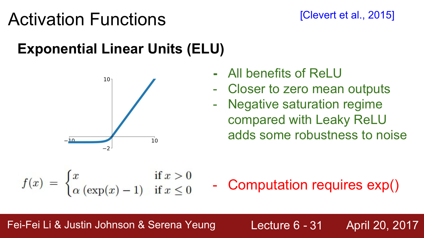 또 하나의 예시로는 Exponential Linear Units(ELU)가 있습니다.