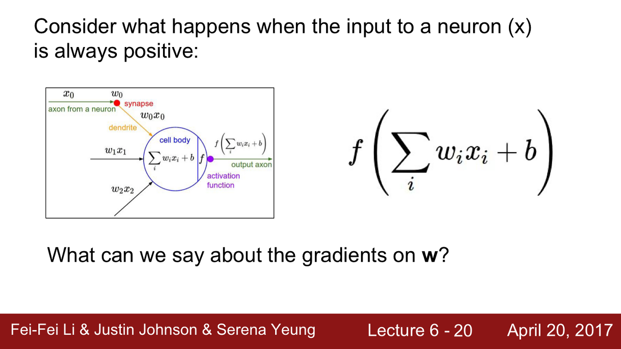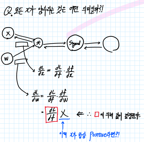 Q. 만약 neuron의 input값인 x가 항상 양수라면 gradient W는 어떻게 될까요?