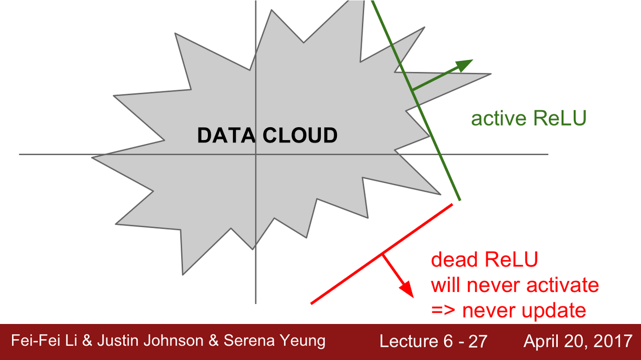 ReLU가 DATA CLOUD로부터 떨어져 있을 때 Dead ReLU가 발생할 수 있습니다.