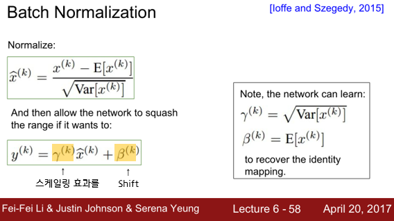 짧은 문장 안에 Batch Normalization의 핵심을 잘 담아놨다고 생각합니다.