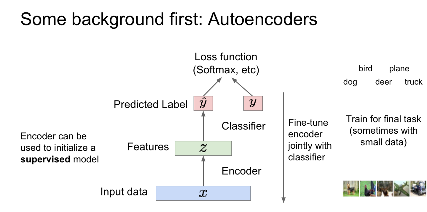 - 학습시킨 feature representation을 데이터가 부족한 supervised learning 모델의 초기화 값으로 사용합니다