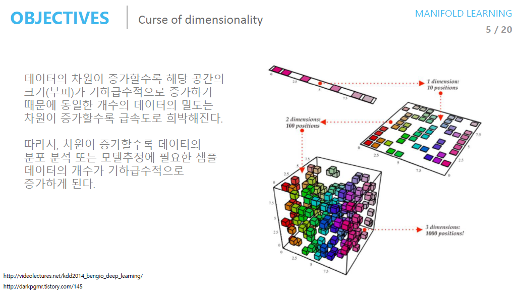 왜 차원의 저주(Curse of Dimensionality)가 Manifold의 특징인지 다음 슬라이드를 통해 알 수 있습니다.