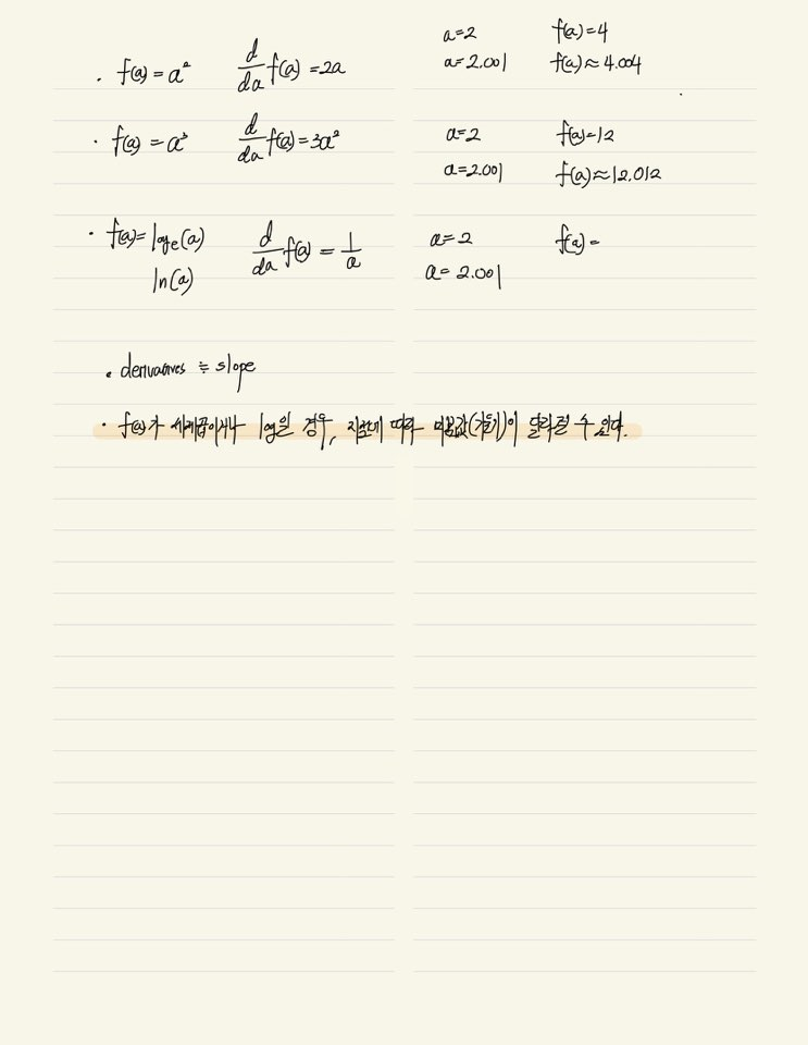 - ๋ฏธ๋ถ์ ์ง๊ด ⇒ Slope(๊ธฐ์ธ๊ธฐ) ๋ผ๊ณ ์๊ฐํ์
