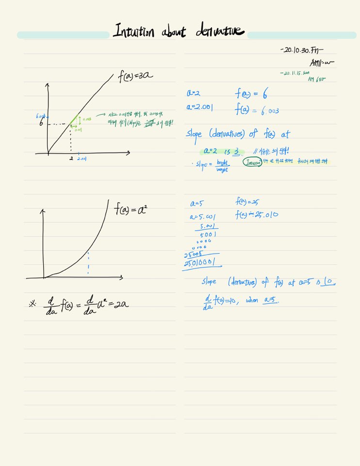 - ๋ฏธ๋ถ์ ์ง๊ด ⇒ Slope(๊ธฐ์ธ๊ธฐ) ๋ผ๊ณ ์๊ฐํ์
