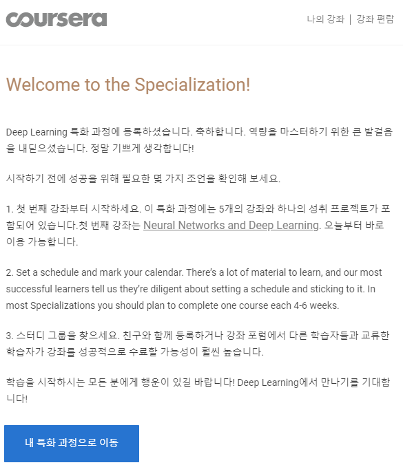 Courera의 'Deep Learning Specialization Course'. 지금 시작합니다!