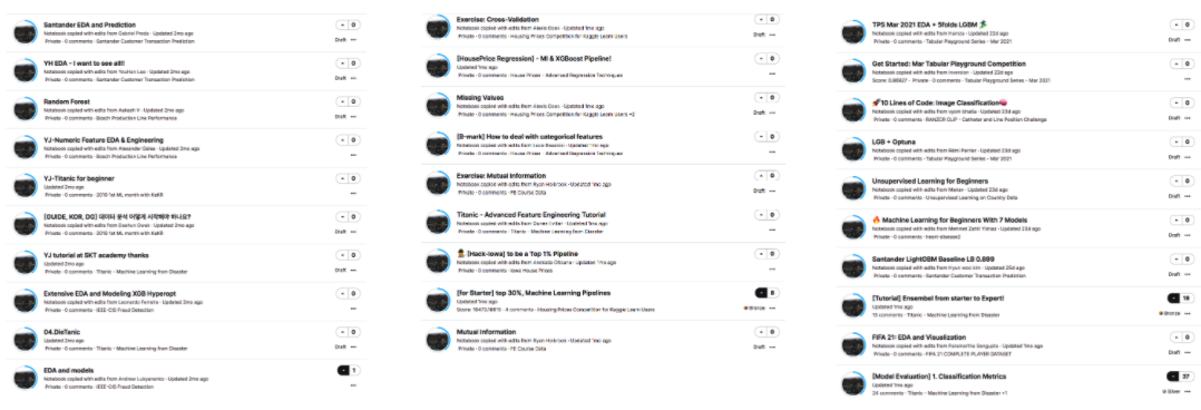 - 평소 블로그를 운영하면서 꾸준히 글을 썼던 습관이 Kaggle에서 노트북을 작성하는 습관으로 이어짐