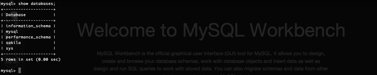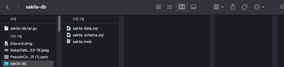 한가지 기억에 남는 점은 Mac OS에 MySQL Server 설치 시. dmg 파일로 설치를 했다는 점입니다. .dmg 파일이 뭐지?’라고 생각했는데 윈도우의 .exe와 같은 실행형 파일이었습니다. 설치는 간단했고, 설치 후 sakila database을 받아왔습니다.