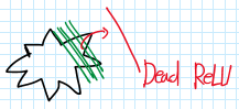 - dead ReLU는 ReLU함수가 active하지 않고 죽어버리는 구간입니다