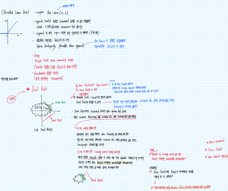 이상 cs231n Lecture 6을 수강하면서 가장 이해가 되지 않았던 ReLU, Dead ReLU에 대한 정리노트입니다.